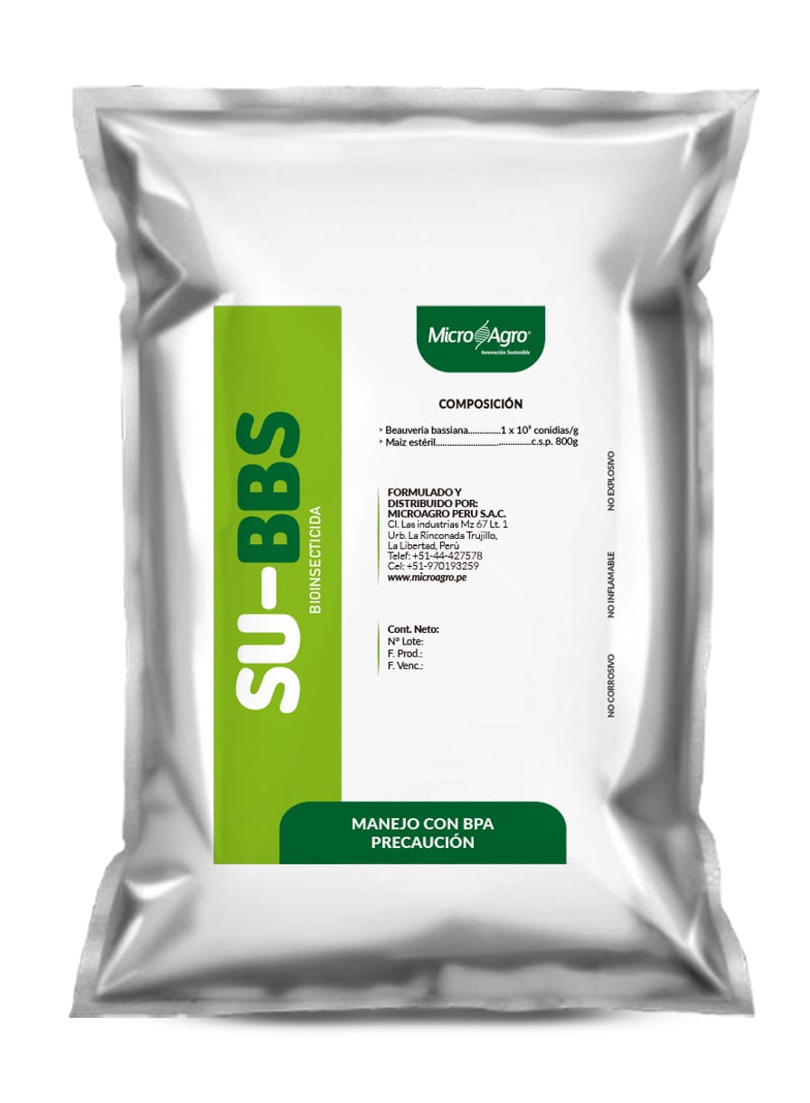 SU-BBS es un Bioinsecticida a base de beauveria bassiana que es un hongo deuteromiceto que crece de forma natural en los suelos, por su poder endopatogeno es utilizado como controlador biológico sobre diferentes insectos del orden Coleoptera, Hemiptera, Homóptera, Lepidóptera y Ortóptera.