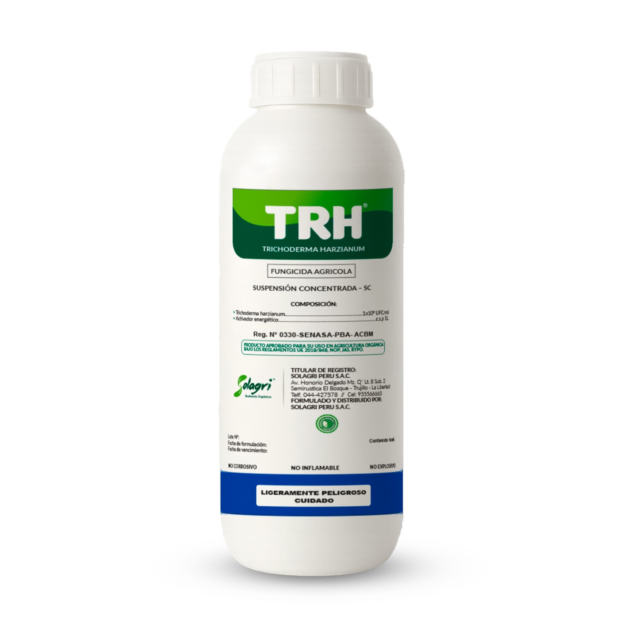 TRH, es un fungicida biológico a base de Tricoderma harzianum el cual controla enfermedades causadas por hongos fitopatógenos regulando la enfermedad y deteniendo el daño, gracias a sus diferentes mecanismos de control. Entre estos, los principales son la competencia por espacio y nutrientes, el micoparasitismo y la antibiosis, los que tienen una acción directa frente al hongo fitopatógeno.